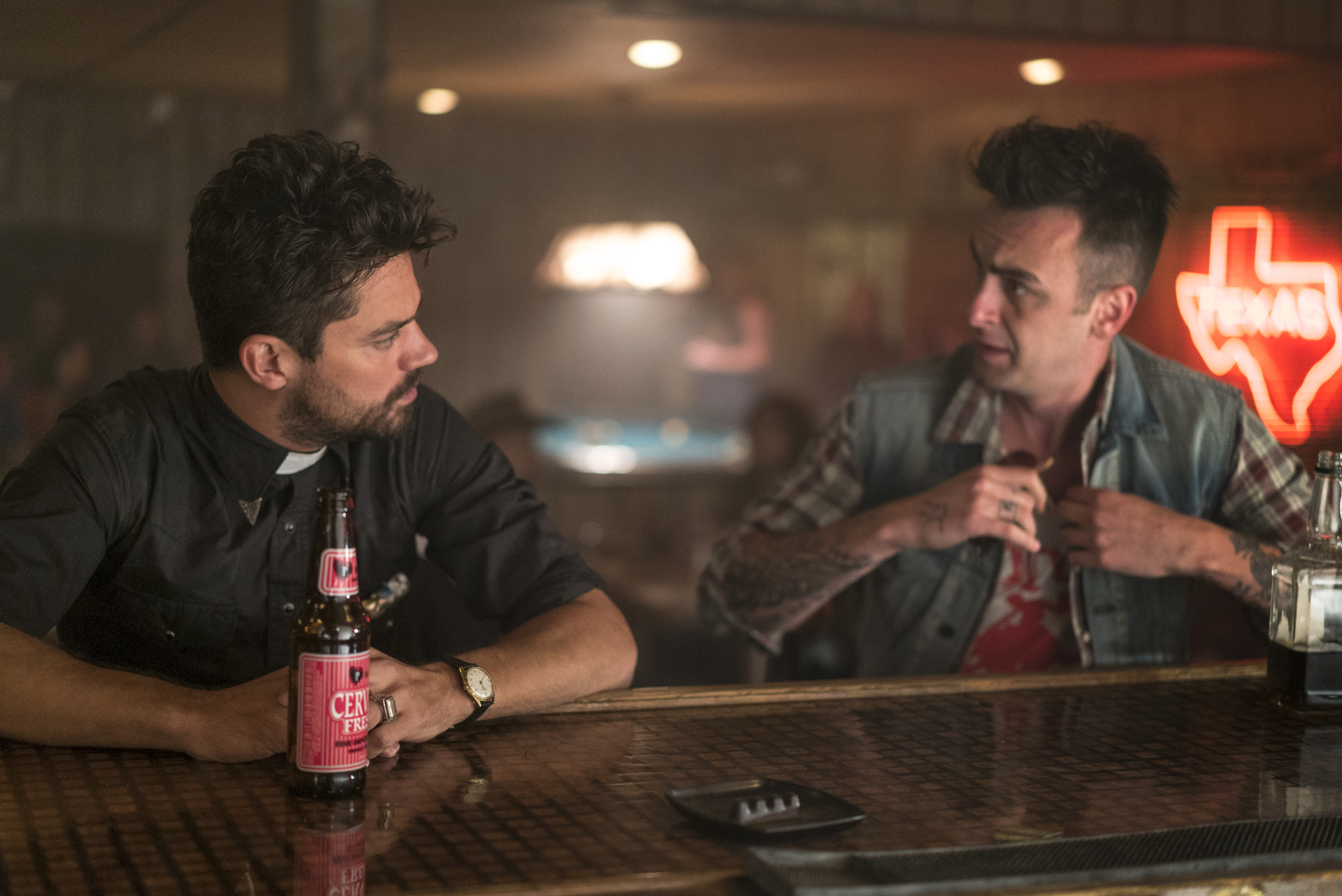 Donde la serie no suele fallar es en los finales de episodio, sabe dónde dejar cliffhangers o dar un giro en los últimos minutos de cada emisión, pero sin embargo tiene algunas mesetas en medio del trayecto. Por esto es que la primera temporada de Preacher probablemente hubiera funcionado mejor siendo más corta, de unos 6 capítulos y con un mejor ritmo, más aun teniendo en cuenta que con lo que sucede al final de la temporada poco importa todo lo que vimos referido al pueblo donde estuvieron concentrados los 10 episodios, los antihéroes parten y el resto parece que es un “hasta nunca”. Pero algo que sumaría mucho es darle más presencia al humor negro, no solo porque es una base fundamental de la esencia del cómic sino porque cuando la serie se anima a abordarlo levanta mucho la calidad general y efectivamente parece que estamos viendo una buena adaptación de Preacher. SPOILERS: Así como también en el último capítulo finalmente la serie se encamina hacia uno de sus ejes temáticos: la blasfemia y palazos a la religión dan el presente a mano alzada cuando Jesse invoca a un Dios impostor que confiesa que el verdadero Alfa y Omega se dio a la fuga con el rabo entre las patas. Esperemos que este aspecto también se expanda a futuro, potenciando esto y el humor no hay chances de que la serie falle.