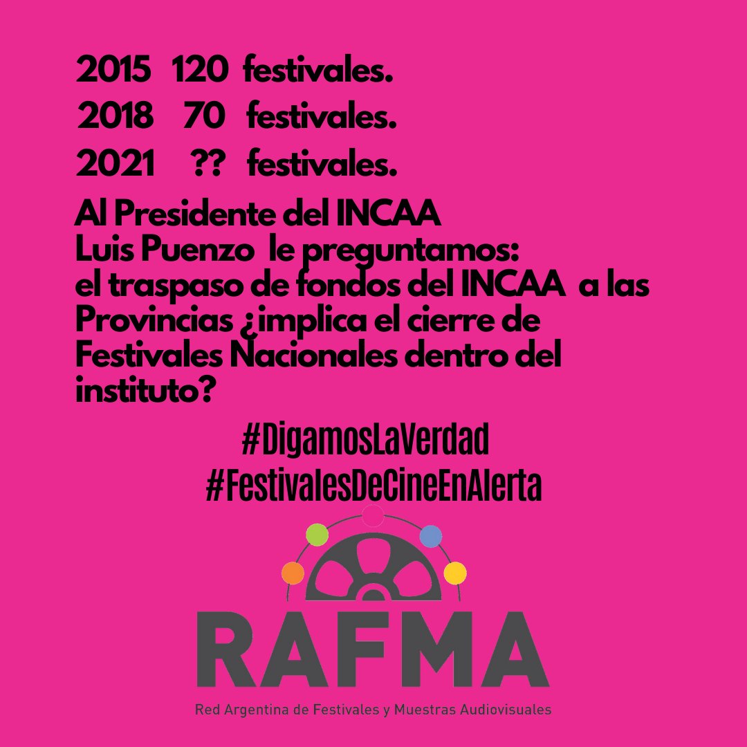 No hay mucho que actualizar sobre la situación del INCAA. El organismo que preside Puenzo sigue sin aclarar nada respecto del cierre del Programa de Festivales Nacionales de Cine y la RAFMA sigue insistiendo en que alguien se haga cargo del asunto. Inexplicable, sí. Además, en las últimas horas, la Coordinadora Audiovisual Federal (CAF) presentó un proyecto para pedir que se derive el porcentaje de IVA de las OTT (over-the-top media services) al fondo de fomento, al igual que sucede con las entradas de cine.
