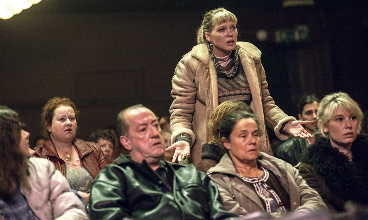 El segundo eje lo encabeza Lea Seydoux como la esposa de Averin. La tensión emocional y la incertidumbre por no saber qué pasa con sus familiares se muestran y condensan en la figura de la francesa. Desde un inicio saben que el Kursk sufrió un accidente, pero las autoridades no informan como corresponde si hay sobrevivientes o si están haciendo esfuerzos para rescatarlos. Incertidumbre que lxs llevará a enfrentar al poder militar y político, con un careo frente a la cúpula militar muy bien filmado e interpretado por lo que logra transmitir.