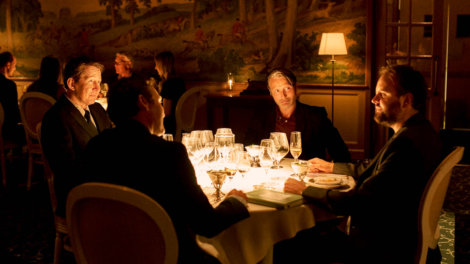 Si bien la historia expone los casos de los cuatro amigos, hay un claro protagonista que es Martin (Mads Mikkelsen). Su negativa a tomar alcohol en el cumpleaños debido a que tiene que manejar es lo que dispara la propuesta y es su mirada la que sigue guiando el resto de la historia. De hecho, en una escena que resulta bisagra, Martin mira a través de la ventana mientras adentro el resto se prepara para el desborde total. Será su decisión la que marcará el destino del relato.