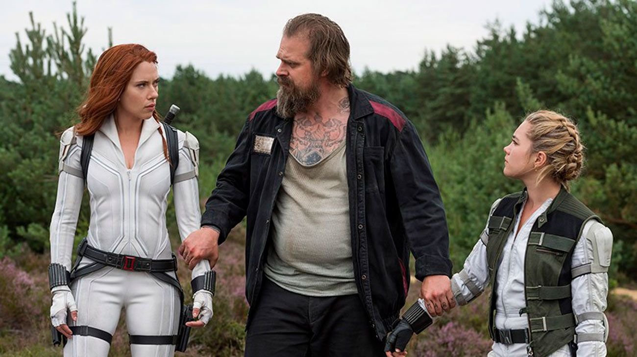 La película se propone como una película de origen, pero realmente este es uno de los puntos que se le vuelve en contra. De origen tiene muy poco, solo establece quiénes fueron su familia cuando era una niña y un montaje de la vida de black widow dentro de las red rooms al ritmo de “Smells Like Teen Spirit”. Aunque se ve excelente desde lo visual, deja sabor a poco con la muy escasa información que se nos da acerca de los orígenes de Natasha. Este “origen”, por otro lado, sí trae la presencia de personajes como Yelena Belova, Alexei Shostakov/Red Guardian (David Harbour) y Melina Vostokoff (Rachel Weisz), personajes que son el corazón de la película, en especial, Florence Pugh (Midsommar) y David Harbour (Stranger Things). Otro de los puntos flojos en cuanto a desarrollo de personajes es que Natasha es el personaje que menos evoluciona dentro del film, siendo ella la protagonista absoluta, son pocos los momentos cuando vemos una faceta distinta del personaje. Podríamos haber sido testigos de los horrores por los que pasó Natasha, y verla levantarse y superarse hubiese sido un aditivo interesante al film y a la misma heroína. Sin embargo, Natasha transita su camino sin ningún contratiempo o cambio evidente en su persona. Yelena, como decía, es uno de los aditivos más enriquecedores del film, parece que el reencuentro con su ex familia era algo importante para ella, y su sentido del humor se siente como una escapatoria a lo que seguramente vivió en la “Red Room”. Su objetivo es liberar a sus amigas que aún siguen encerradas y esa es su gran motivación. Alexei, interpretado por David Harbour, es otro de los personajes que más evolucionan dentro de la película. De ser alabado como el “Red Guardian” a quedar preso y hacinado con otros seres olvidados y concretar un vínculo otra vez con su ex familia es lo que lo convierte en uno de los individuos más atractivos dentro del film. Lamentablemente quedan desdibujados personajes como Melina Vostokoff o “Taskmaster”/Antonia Dreykov, interpretando por Olga Kurylenko, debido a que ambas se muestran muy poco en pantalla, lo cual parece ser un desperdicio, más aun considerando que Melina es interpretada por la increíble Rachel Weisz, pero a diferencia de Natasha, podemos tener la esperanza de que en el futuro volveremos a verlas.