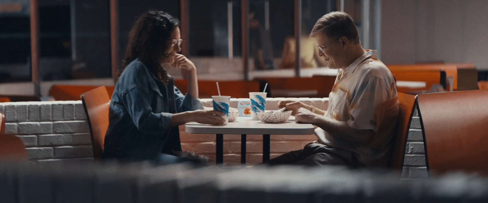 Además de una narrativa que rinde homenaje al lenguaje del VHS, Rent-A-Pal expone también el deseo de hacer palpable su materialidad, sus colores desvaídos, sus siluetas fantasmales, sus distorsiones aleatorias. La voz de los personajes se entremezcla con el rumor de los rodillos de la videocasetera, la impaciencia se alivia con los botones RW o FF, los momentos se rebobinan o se adelantan como secuencias deformadas en una pantalla de tubo. En este sentido, Rent-A-Pal elabora una verdadera hauntología de VHS que recuerda el trabajo del gran Joe Begos (cineasta sobre el que hace un tiempo escribí este artículo en nuestra querida 24 Cuadros). Siguiendo esta línea estética, la relación de amistad que el David de carne y hueso establece con el Andy de rayos catódicos constituye un homenaje a ese culto esotérico de fines del siglo XX que consideraba el televisor menos un simple receptor de señales que un auténtico umbral a otra realidad. De ahí que esos momentos en los que David asoma su rostro a la pantalla con la intención de fundirse con ella evoquen esa misma ansia que palpita en clásicos como Poltergeist (Tobe Hooper, 1982), Videodrome (David Cronenberg, 1983) o TerrorVision (Ted Nicolaou, 1986).