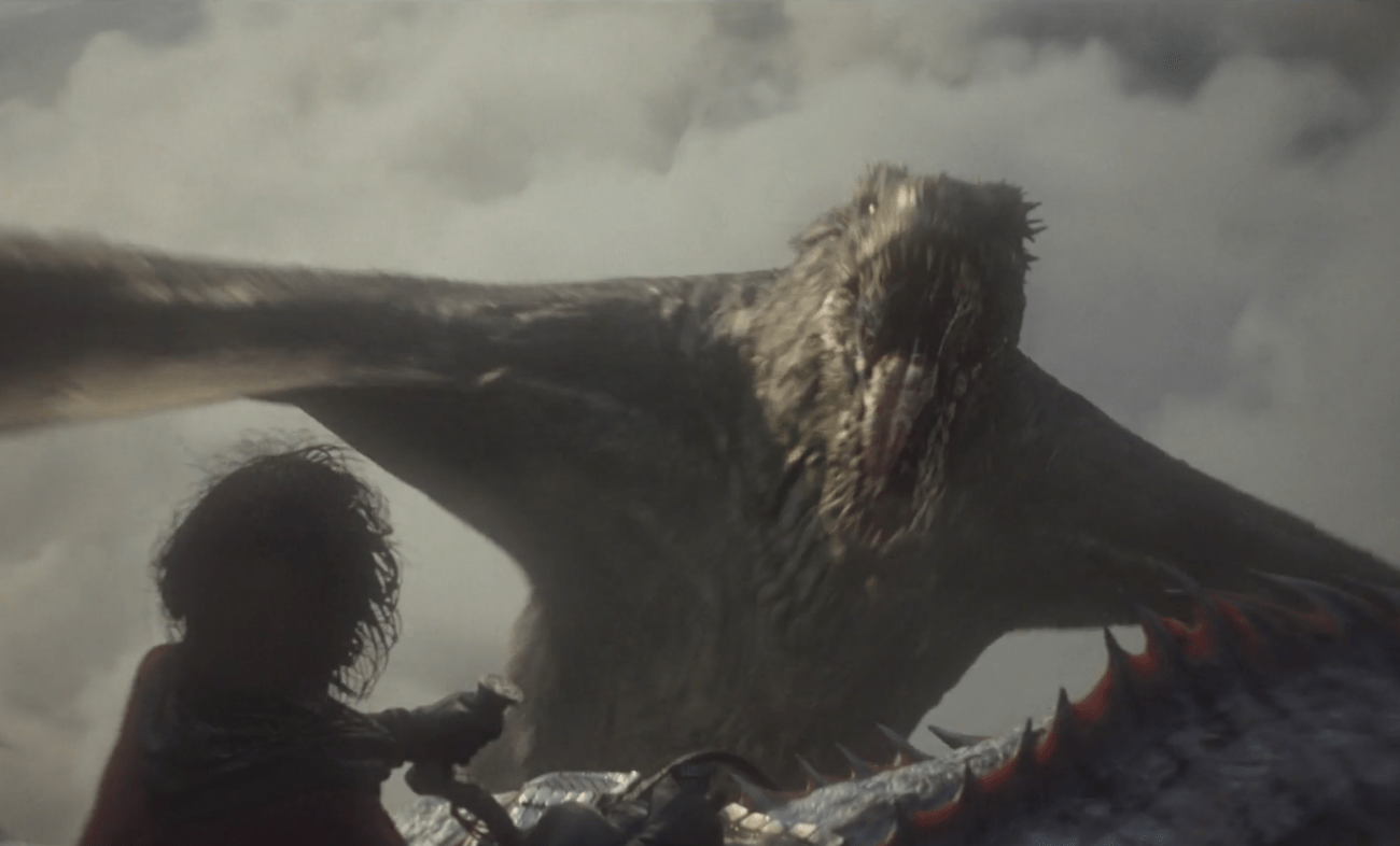 Luego de un escape por los pelos, en los que Borros Baratheon solo atina a decir “no aquí” cuando Aemond quiere dejar tuerto al pequeño, Luke emprende vuelo a Rocadragón en el mínimo Arrax. Pero Vhagar acecha entre las nubes. Tenemos la primera danza de dragones, que termina con Vhagar fagocitando en el aire al dragón y al niño.