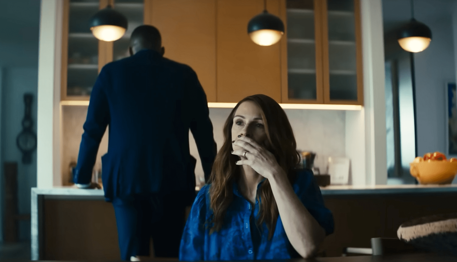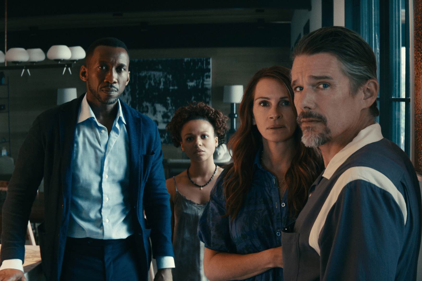 Ya no hay internet ni TV. Por ende, en medio de este paisaje acomodado, pero aislado, no hay noticias. El malestar de la desconexión, un sentimiento que empezamos a vivir en los últimos 10 años, se hace notar en la pantalla. No hay mucho tiempo para que crezca, cuando la noche cae, alguien toca a la puerta. Esmail cita ecos de Jordan Peele aquí: quienes tocan a la puerta son un hombre y su hija, vestidos de gala, de modales suaves y amables. Pero son negros, lo que causa la duda prejuiciosa de Amanda. G.H. (Mahershala Ali) y su hija Ruth (Myha’la Herrold) explican que son los dueños de la casa, que en la ciudad de Nueva York hay un apagón. Que quieren pasar. Amanda se resiste. Clay acepta. Se construye la tensión. No está claro, en un punto, quién es el intruso, ¿el inquilino o el dueño? G.H. es un hombre conectado. Un financista de los dueños del mundo. El único agujero en el verosímil es ¿por qué carajos un millonario pondría en Airbnb su casa de fin de semana? Pero tal vez por estos razonamientos es que yo soy pobre. Sigamos.