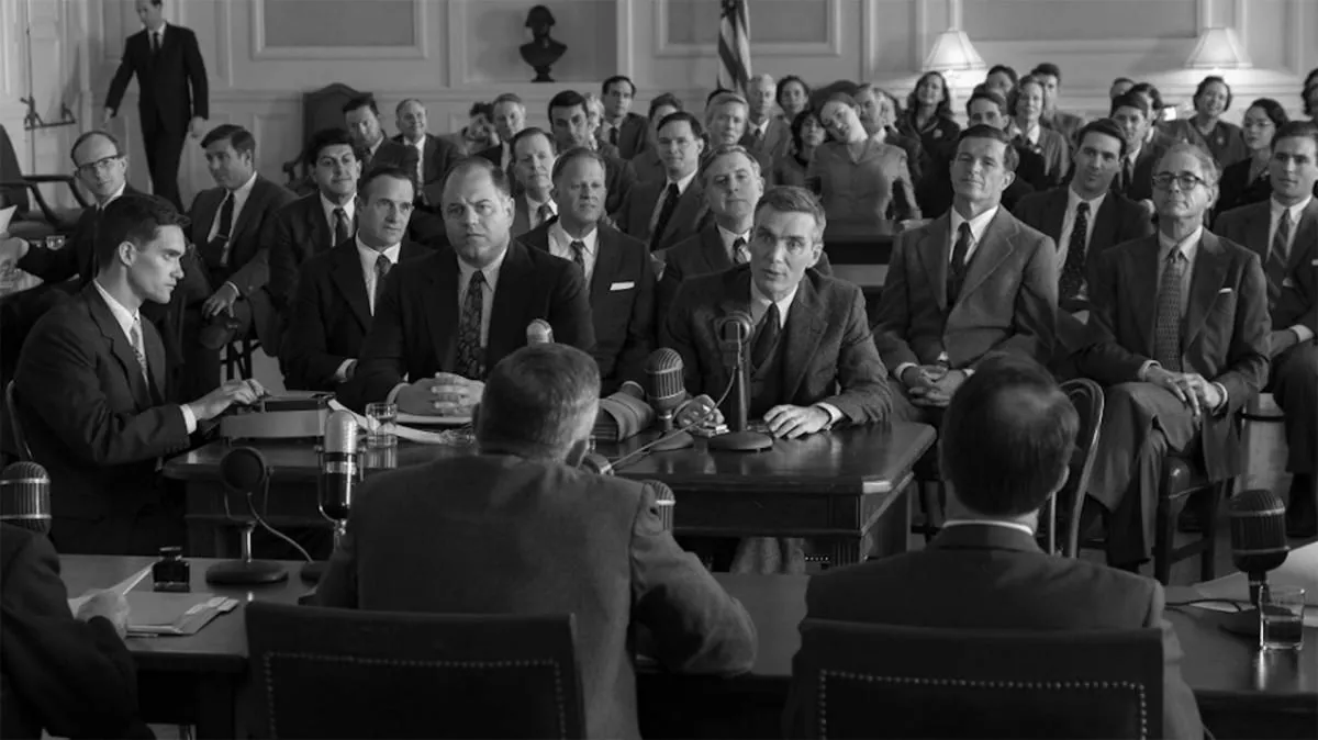 Nos encontramos entonces con dos puntos de vista, basados en testimonios. El primero es el que hace el mismísimo Robert Oppenheimer (Cillian Murphy) en 1954, cuando es confrontado por una comisión que evalúa su idoneidad para seguir teniendo acceso a información clasificada y por ende pertenecer al eslabón más alto de la cadena científica y armamentística de Estados Unidos. Perder ese estatus sería el equivalente a ser desterrado en vida. El otro es en 1959, cuando el Congreso de Estados Unidos lleva adelante audiencias para confirmar en su cargo a Lewis Strauss (Robert Downey Jr.), ex presidente de la Comisión de Energía Atómica, nominado para ser Secretario de Comercio, cargo que debe ratificarse en el Senado. Strauss y Oppenheimer están enfrentados en una guerra fría.