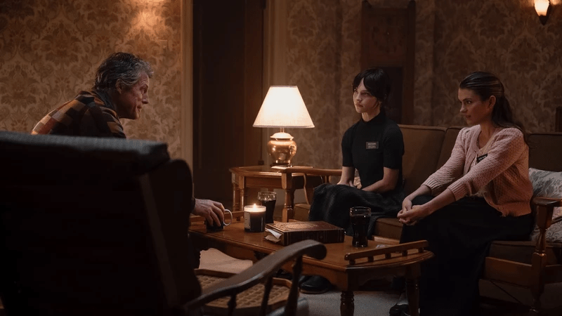Tras una fachada de terror psicológico, Heretic (Scott Beck y Bryan Woods, 2024) propone una crítica de las bases culturales y religiosas de los Estados Unidos. No es por azar que, en el centro de la discusión, se enfrenten los argumentos evangélicos de las misioneras mormonas hermana Barnes (Sophie Thatcher) y hermana Paxton (Chloe East) con las irónicas refutaciones académicas del escéptico Mr. Reed (Hugh Grant).