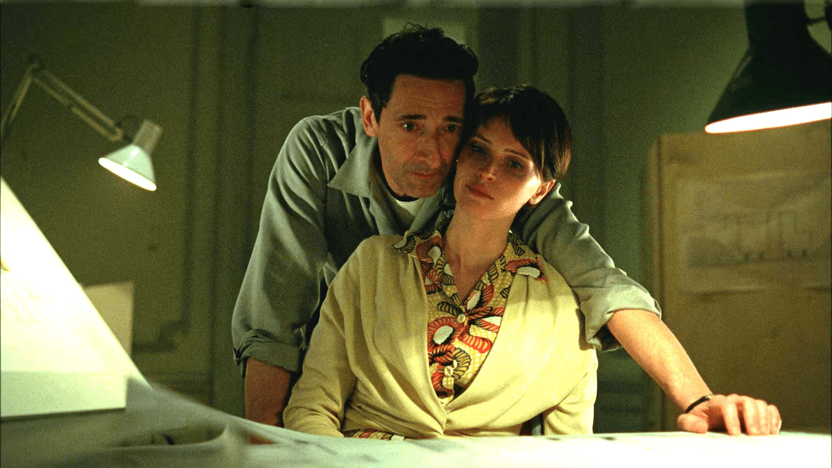 Dirigida por Brady Corbet y coescrita con Mona Fastvold, la película se divide en dos partes que podrían ser dos films distintos, pero que juntas tejen un relato profundo, acompañado por una puesta en escena magnífica y colosal, en sintonía con la obra arquitectónica que Lászlo construye en la segunda mitad. Investigando sobre el brutalismo, descubrí que esta corriente arquitectónica se caracteriza por el uso del hormigón armado, formas geométricas y una prioridad de la funcionalidad por sobre la estética. The Brutalist refleja eso en cierta forma, aunque su belleza estética es innegable. La música, la fotografía y la puesta en escena crean atmósferas opresivas o incómodas según el momento, y las actuaciones magistrales de todo el elenco potencian un conjunto diseñado para transmitir emociones y sensaciones.